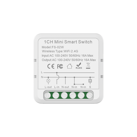 Mini interrupteur WiFi intelligent 16A, 1 Gang, 2 voies, Module d'interrupteur d'éclairage intelligent DIY Smart Life/Tuya App Compatible avec Alexa et Google Relay