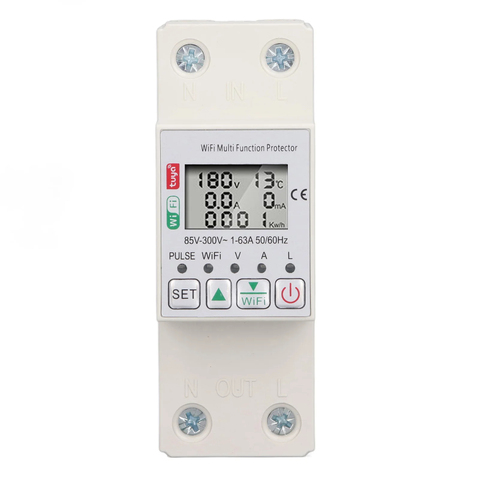 63A TUYA Smart WIFI Energy Power KWH Meter Disyuntor Temporizador con relé protector de voltaje